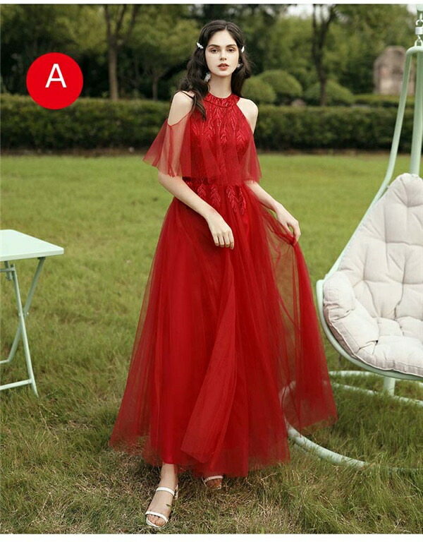 高品質★オフショルダー パーティードレス ウエディングドレス ロングドレス 二次会 披露宴 演奏会 発表会 ピアノ 大きいサイズ イベント用 上品 結婚式ドレス ワイン赤 成人式 XS/S/M/L/XL/2XL/3XL