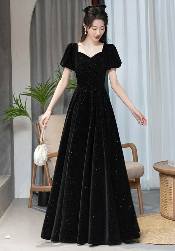 高級感 エレガント マキシ丈ドレス パーティードレス ウェディングドレス 花嫁 結婚式 二次会 卒入式 お呼ばれ イブニングドレス 20代30代40代 ファスナー フォーマル プリンセス 無地 秋冬夏 黒/ブラック 洋服 半袖ワンピース スリットワンピース XS/S/M/L/XL/2XL