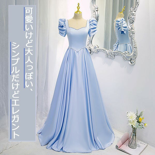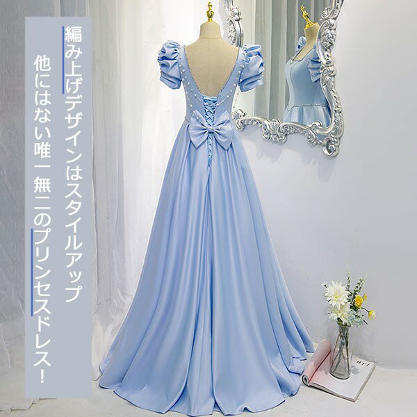ドレス 大人 ピアノ 発表会 大きいリボン ロングドレス 演奏会 パーティードレス 大きいサイズ 韓国 パフスリーブ ワンピース 大人可愛い Aライン プリンセス ブルー イベント 結婚式 母親 ドレス 二次会 忘年会 成人式 誕生日 フォーマル XS S M L 2L 3L 4L dg279t2t2l9