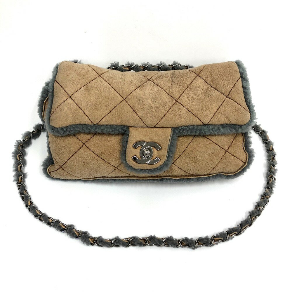 [USED/中古]CHANEL シャネル ショルダーバッグ ココマーク ヴィンテージ マトラッセ もこもこ チェーンショルダーバッグ ベージュ グレー ムートン スウェード シルバー金具 Aランク【中古】