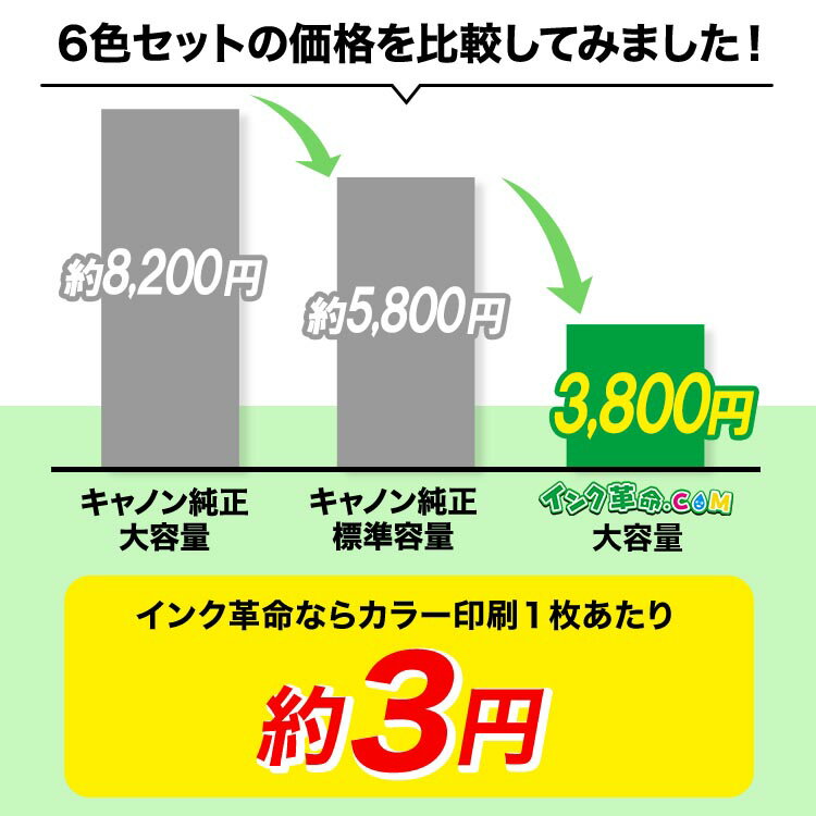 キャノンインク 370 371の純正品(通常容量)と比較しても、インク革命の互換インクのインク容量は約1.5倍! こちらの商品は、純正メーカー キヤノンの取り扱う 純正インクと異なる、互換性のあるサードパーティー製の互換タイプのインクになりますが、キャノン純正品のインクカートリッジ同様に ICチップ付きで 残量検知機能にも対応 しております。