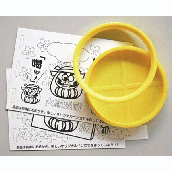 【合格祈願ペン立てセット内容】ダルマ、絵馬のデザイン済み色塗りペン立て工作キット 【サイズ】H10.8×8.5cm パッケージ:9×9×1cm 【素材】紙、PP 【単位】100個 【備考】色を塗って完成させるペン立て作り 色鉛筆やマーカーで着色できます またデザインを裏返せば無地になるため、お好きなデザインを描けます。
