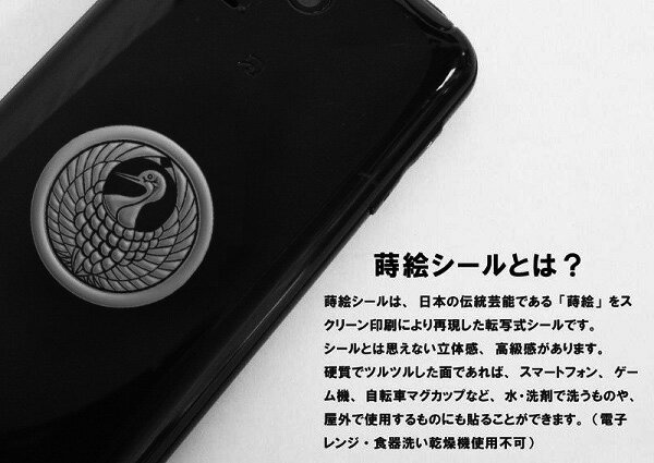 家紋 ステッカー 蒔絵シール「丸に鶴の丸/SV」銀 鶴 ケータイ スマホ iPhone デコ ステッカー 和柄 剣道 胴 家紋シール iQOS アイコス