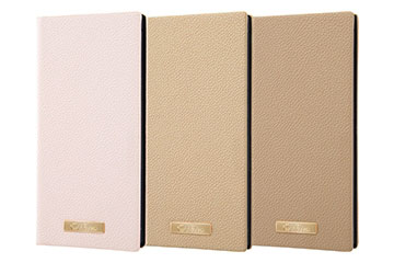 ロゴプレートと優しい色合いが特徴の女性向けレザーケース。