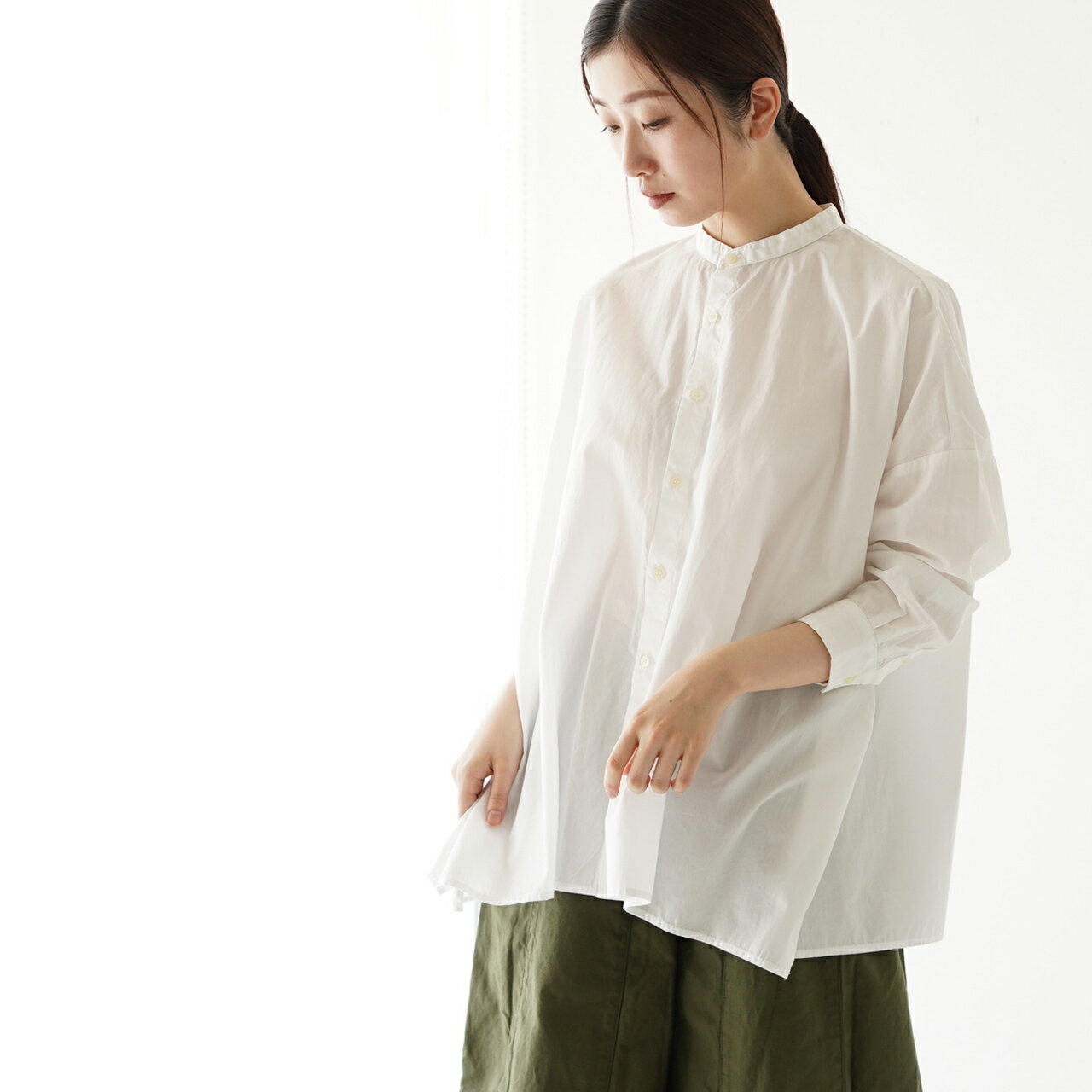 >ギフトラッピングはこちら関連キーワード レディース トップス シャツ ブラウス スタンドカラー バンドカラー 無地 ソリッド 長袖 ロングスリーブ ワイドシルエット ドロップショルダー ファームシャツ 日本製 カジュアル ナチュラル トラッド シンプル ベーシック ワーク TN